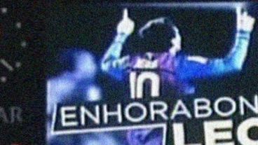 "Enhorabuena, Leo", rezaba la pantalla gigante en el estadio blaugrana luego de la segunda conquista del argentino, a modo de felicitación.