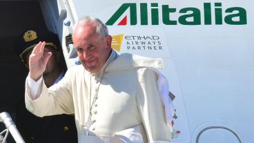 El Sumo Pontífice aterrizó en el Aeropuerto Internacional Silvio Petirossi de Asunción 10 minutos antes de las 16 de Argentina, a bordo de un avión de Alitalia que lo trajo procedente de Bolivia, para visitar el último de los tres países de su gira sudamericana.