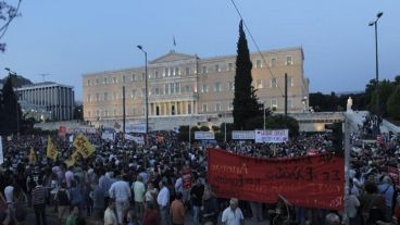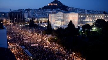 Miles de griegos se congregaron este lunes frente al Parlamento en Atenas para apoyar el llamado del primer ministro griego, Alexis Tsipras, a rechazar una propuesta de "rescate" financiero de los acreedores de Grecia, ordenado banderas griegas y cantando "tomen su rescate y váyanse".