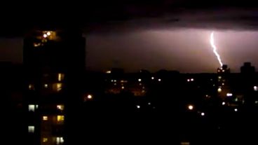 "Uno de los tantos rayos que cayó sobre la ciudad de Rosario en medio de la copiosa lluvia en la madrugada", escribió uno de ellos. La foto que fue tomada a las 3 de la mañana, es una muestra de lo que se repitió durante toda la noche.
