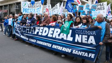 La Marcha Federal partió desde cinco puntos del país. La columna del NEA arribó a la ciudad este jueves previo paso por Santa Fe, donde hubo un acto más temprano. Cenaban en Rosario y después seguían viaje hacia La Matanza, ya que en Buenos Aires se reunirán este viernes todas las columnas para el acto central. Desde Rosario, partirán más de 20 colectivos para participar de la protesta.