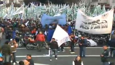 Una columna del gremio de Camioneros llegó a la histórica plaza por la Avenida Roca (Diagonal Sur), en tanto otras agrupaciones se concentraron en distintos puntos de la Avenida 9 de Julio para luego iniciar la marcha hacia el escenario, montado de espaldas a la Casa Rosada.