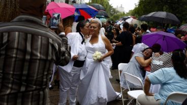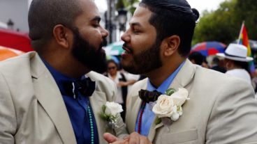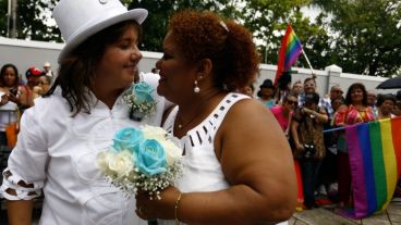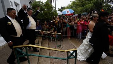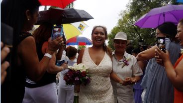 "El mensaje es que las personas pueden hacerse su propia vida, ser feliz y amarse al nivel que quieran amarse no importa lo que hagan", añadió Natal, un militar retirado, antes de arrancar la marcha nupcial y caminar frente a cientos de visitantes que acudieron a la ceremonia.