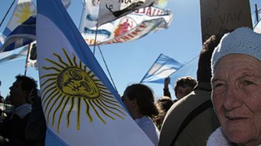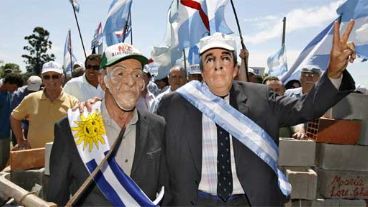 Aunque sí había en el muro y entre la gente carteles con leyendas contrarias al presidente de Uruguay, la empresa Botnia, Finlandia y el Banco Mundial.