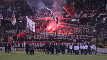 “Nada cambia este sentimiento. Tu gente sigue fiel”, decían las letras montadas detrás del arco y que resumieron el mensaje principal hacia los jugadores, quienes estuvieron cerca de media hora en el campo de juego. También hubo un claro apoyo a Maxi Rodríguez (y también a Diego Mateo).