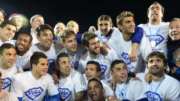 Tras la derrota, el equipo de Martino se quedó para recibir las medallas y después aplaudió cuando las autoridades le entregaron la Copa a Vélez.