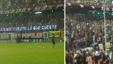 De fondo, siempre el aliento de los hinchas, que sumaron una curiosidad. La bandera luminosa que pedía: “Ganarle al Sin Aliento cueste lo que cueste”.