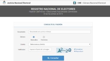 La Cámara Nacional Electoral recordó que al padrón también se puede acceder a través de la página web www.electoral.gov.ar, por teléfono al 0800-999-7237 o personalmente en la Secretaría Electoral de cada distrito.