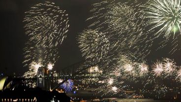 Los fuegos artificiales de Sídney, que se atraían hasta el puerto de la ciudad a más de medio millón de personas, iluminaban los edificios emblemáticos, como la Casa de la Opera y el Puente Metálicos.