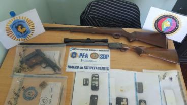 En el procedimiento se secuestraron tres kilos de cocaína, 200 gramos de cogollos de marihuana, más de 194 mil dólares y 250 mil pesos, todos apócrifos, una pistola Taurus 9 mm, una carabina 22 y una escopeta.