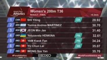 La rosarina Yanina Martínez obtuvo la medalla de plata en la final de los 200 metros T36 del Mundial de altétismo que se lleva a cabo en Londres.