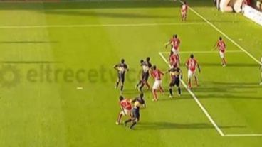 Para colmo sus jugadores no disimulan su nerviosismo y esta vez Agustín Orion y el uruguayo Emiliano Albín fueron los protagonistas de una discusión en pleno partido.