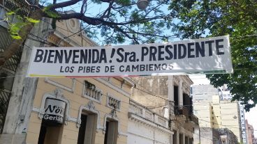 Son varios pasacalles, todos iguales. Fueron colgados en la zona del Concejo y de la Municipalidad en estos días, aunque alguno puede creer que quedaron de algunos años atrás por su frase principal : “Bienvenida señora presidente”.