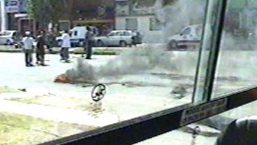 El colectivo lo tomaron a la salida de la sede de la Semtur, ubicada en Provincias Unidas y Ocampo, donde el chofer se bajó del coche. Acto seguido, los manifestantes quemaron una cubierta en señal de protesta impidiendo el tránsito en una de las manos de la avenida.