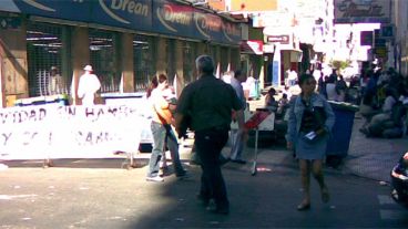 El corte de las calles Sarmiento y Rioja se realiza frente al edificio de la Ansés, donde funciona la delegación local del Ministerio de Trabajo nacional. Por las pérdidas que se producen ante la no llegada de clientes, los comerciantes de esa zona del microcentro se volvieron a sumar al piquete en la mañana de este viernes con la intensión de apurar una solución al conflicto.