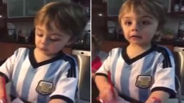 Su mamá lo llama “panqueque”; pero a él no le importa. Con la camiseta argentina puesta, el pequeño proclama en un video que quiere que gane Chile la final de la Copa América.