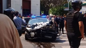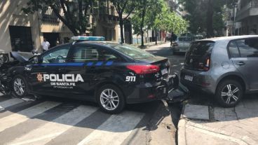 Según contaron testigos a Rosario3.com, el patrullero circulaba por Pueyrredón a "alta velocidad y sin sirena" y se topó con el Volkswagen Up!
