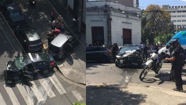 Un patrullero policial chocó con un auto que era conducido por una mujer este miércoles en San Juan y Pueyrredón.