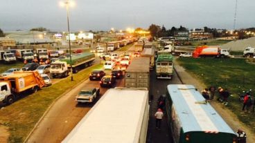 Los camioneros santafesinos se concentraron este martes en las intersecciones de la ruta A-012 y la autopista Rosario-Buenos Aires desde las 10.