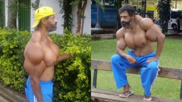Valdir Segato, de 48 años, es un empleado de la construcción de la ciudad de San Pablo, Brasil, que se inyectó varias veces una sustancia compuesta por aceite y otros productos en sus músculos con el fin de agrandarlos. Le recomendaron dejar de hacerlo, pero se niega. Aumentó el tamaño de sus bíceps más de 25 centímetros.