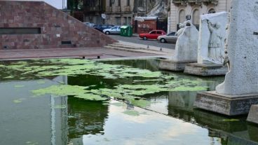 El Monumento a la Bandera se llenó de musgos y basura. Norberto, un usuario de Rosario3.com envió una serie de fotografías del estado actual del espacio público más emblemático de la ciudad donde se pueden ver los espejos de agua que rodean las estatuas de Lola Mora en malas condiciones de limpieza.