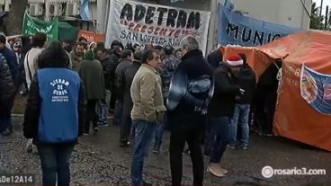 Protesta de empleados municipales despedidos sobre la ruta 11