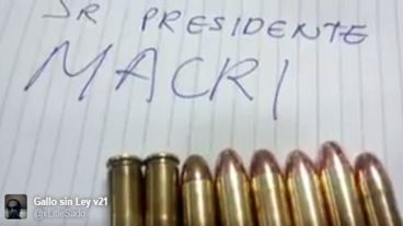 Según publica Infobae.com, las imágenes son impactantes. Ocho municiones y una pistola acompañan un escalofriante mensaje para el presidente Mauricio Macri.