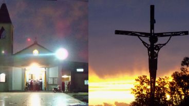 Las fotos enviadas por Fernando muestran la bajada del sol cerca del cementerio, los libustros torneados por el tren que se encontraban en la punta del pueblo, los cuales ya no están “los de ferrocarril podaron todo”, agregó. Otra de las imágenes muestra a la Iglesia del pueblo y a una Cruz que se alza en la punta de la localidad.