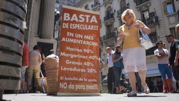 Los panaderos colocaron un cartel en el lugar, a través del que exigían “basta de especular”. Allí señalaron que la harina aumentó un 90%, las margarinas un 40%, las grasas un 40% y las levaduras un 20%.