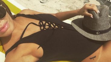 En un momento de descanso, optó por fotografiarse en malla, con los pies en la arena, junto al mar. Las imágenes revelan un tatuaje de una libélula en su pierna.