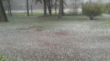 El alerta meteorológica vigente para la región no contemplaba granizo sino lluvias intensas. De hecho, tras el fenómeno –que en zona sudoeste se inició a las 15.45 y duró un par de minutos– siguió un chaparrón, acaso el más copioso del día, que diluyó rápidamente el blanco que había tapizado los rincones de la ciudad.