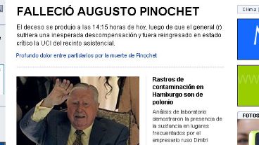 En Chile la noticia ocupó desde las 14.30 la plana de todos los portales. Con la actualización minuto a minuto, los medios de Santiago, El Mercurio y La Tercera, informaron de los acontecido desde que se conoció la información de la muerte del general Pinochet.