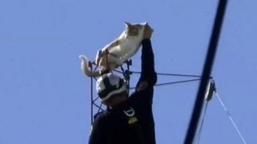 Dos gatos treparon este martes a la mañana a una antena de Arroyito, quedaron atrapados y vecinos llamaron a los bomberos para que los rescaten. Dos dotaciones arribaron a avenida Alberdi y José Ingenieros e iniciaron el operativo. El Tres transmitió en vivo la secuencia, que tuvo final feliz.
