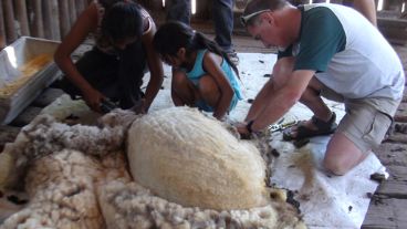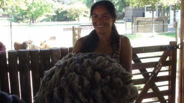 Roberta esquila ovejas que habitan en la zona. Se trata de animales que muchas veces son usados por propietarios de quintas para mantener corto el césped. El miércoles 7 de diciembre fue a hacer lo suyo a La Granja de la Infancia municipal, donde le cortó el pelo a dos ejemplares usando para ello una tijera que maneja a la perfección. Según explicó, lo que obtiene se denomina vellón, es el material que luego lavará, teñirá con tintes naturales e hilará.