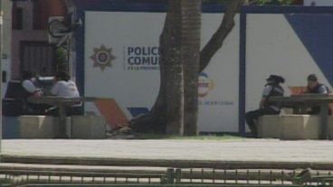A cuatro cuadras del lugar, El Tres encontró el destacamento de la policía Comunitaria en la plaza Libertad. A metros del lugar, varios agentes descansaban sentados al sol.