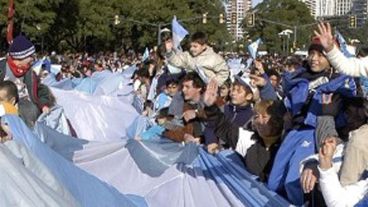 La fiesta histórica. La de siempre, la que siempre identificó a la ciudad. Rosario celebra hoy el Día de la Bandera a toda orquesta, por más que falten el presidente Néstor Kirchner y el gobernador Jorge Obeid, que viajaron a España para una visita oficial. El tradicional ararancó luego de la llegada del vicepresidente Daniel Scioli, quien dijo que hay que tener presente siempre el ejemplo de Belgrano y que estaba orgulloso de estar en Rosario, todo un símbolo de la recupración económica del país. Junto a Scioli llegó la ministra de Defensa, Nilda Garré, quien volvió a criticar a los militares que reivindican el terrorismo de Estado (ver nota relacionada). El desfile cívico militar tuvo algo menos de gente que el año pasado. Pero hubo gran entusiasmo, sobre todo cuando comenzó a pasar de mano en mano la bandera más larga del mundo, la de Alta en el Cielo, que ya llega a los 11 kilómetros de longitud. Pero el homenaje a la bandera no se centra sólo en el Monumento. Sobre todo cuando, por estos días, la combinación de la fecha histórica con el Mundial de Fútbol ha hecho que, como nunca antes, Rosario esté cubierta de paños celestes y blancos en toda su geografía.