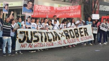 Bajo el lema “Un mes sin Rober”, sus amigos, familiares y vecinos en general de la ciudad se manifestaron en la “esquina de los bancos” de San Lorenzo, en la conocida intersección de San Martín y Urquiza donde todos los jueves los Perassi reclaman por su hija Paula, desaparecida hace ya cuatro años.