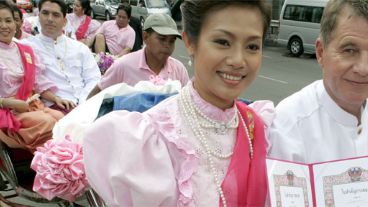 Pero siempre están los que festejan y a lo grande. Es que en Bangkok, Tailandia, hubo un casamiento masivo de 26 parejas. Vestidos con trajes tradicionales viajaron en calesas durante la mañana del Día de San Valentín.