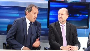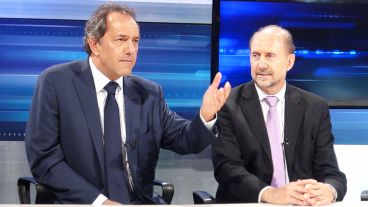 El gobernador de Buenos Aires, Daniel Scioli, se refirió a la carrera presidencial y se diferenció de sus competidores al manifestar que el Frente Para la Victoria no es “una fuerza política que se arma de acuerdo a una elección”. En cuanto a las elecciones primarias en Santa Fe, apoyó al candidato a gobernador Omar Perotti al considerar su gestión como intendente de Rafaela como “excelente” . También habló del titular de la Unión Industrial Argentina, Héctor Méndez, quien pidió eliminar las discusiones paritarias: “Desea seguir la “receta del ajuste”, indicó.