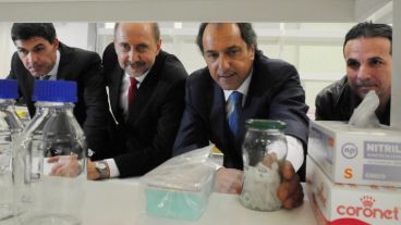 Scioli recorrió las instalaciones del laboratorio, que preside el científico repatriado Claudio Fernández, y de la que también participaron Perotti, el rector de la Universidad Nacional de Rosario (UNR), Darío Maiorana y el candidato a intendente del Frente para la Victoria, Roberto Sukerman, entre otros