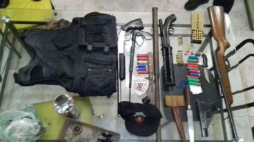 Las armas incautadas son un revólver calibre 38 con carga completa, un arma de fuego de fabricación casera compuesta de cuatro caños calibre 12/70, un arma de fuego de fabricación casera compuesta de dos caños, un chaleco balístico, una carabina calibre 22 con tres cargadores con carga completa, dos escopeta calibre 12/70 -una de ellas sin numeración-, 54 municiones calibre 22, 38, 9, 12/70 y 16, y la ya mencionada 9 milímetros.