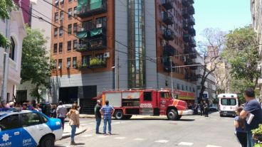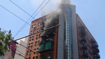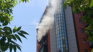 Las llamas se originaron por motivos que se desconocen en un departamento del quinto piso de 3 de Febrero 196 y arribaron al lugar dos dotaciones de Bomberos y dos ambulancias del Sies.