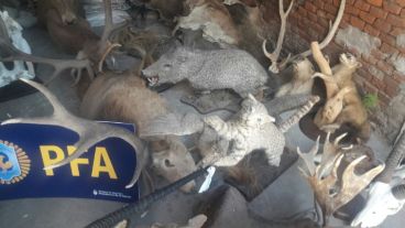 En el interior del negocio se incautaron cabezas y pieles de ejemplares tales como ciervos, corzuelas, pecaríes, pumas, gatos monteses, ñandúes, carpinchos, nutrias, víboras lampalaguas, osos hormigueros, antílopes, leones, cebras, puerco espines, entre otros, por un valor estimado en 3 millones de pesos.