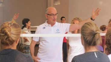 —Cuando me fui a Europa dejé funcionando esa escuela que era de jornadas divididas en una hora de actividad en tierra y una hora en agua a través de natación con flotadores. Los niños tenían que hacer lo mismo en agua que en tierra. Entonces cuando esos chicos que pasaban tres años en la escuela de movimiento alcanzaban la categoría cadetes e iban a nadar aprendían en tres clases sin haber aprendido una brazada pero con una gestión en el agua que los demás niños desconocían por completo. El uso de los flotadores y los giros que daban en el agua los hacía nadar mejor que los nadadores.