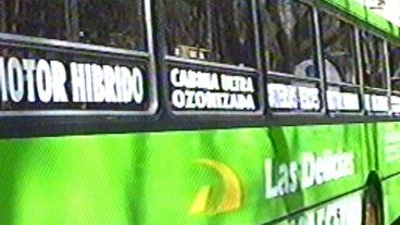 1 de 3 | Los coches fueron presentados frente a la Municipalidad (imagen de TV).2 de 3 | La flota está integrada por 10 colectivos "verdes" (imagen de TV).3 de 3 | Los primeros ecocolectivos del país (imagen de TV).