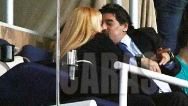 Para el amor no hay lugar ni marco poco propicio. El Old Trafford y un encuentro por cuartos de final de la Champions League también pueden ser el escenario elegidido para los besos y los abrazos. Al menos, así lo entendieron Diego Maradona y su novia Rocío Oliva.