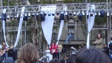 A pesar de la lluvia, el recital a beneficio en la plaza San Martín programado para las 20.30 no se suspendió por el mal tiempo. La explicación la dio uno de los técnicos que esta tarde se la pasó mirando al cielo gris ante la amenaza de lluvia: "El recital hay que hacerlo porque el tipo tiene una onda impresionante".