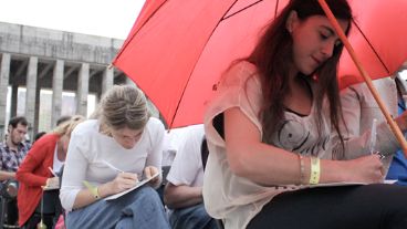 Desde las 14, miles de personas se acercaron a las escalinatas del Monumento para presenciar las charlas de los oradores de diferentes rubros y para participar de lo que fue una tormenta de ideas. La lluvia no impidió que se logre batir el récord, según los organizadores.