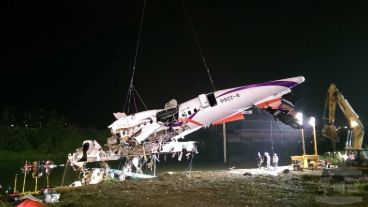 El aparato -con 58 personas a bordo, entre ellas cinco tripulantes y dos menores- se precipitó al río, tras perder altura por causas desconocidas y golpear un viaducto, pocos minutos después de despegar con dirección a la isla de Kinmen, a escasos kilómetros de la costa china.