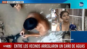 Un grupo de vecinos desesperados por la falta de respuesta de Aguas Santafesinas decidió arreglar un caño por su cuenta. Debieron sumergirse en un pozo en la vereda.